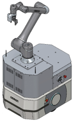 ・モバイルロボットと協調ロボットを組み合わせたモバイルマニュピレータモデル。