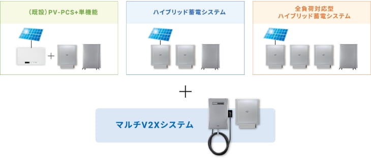 - 2.ハイブリッド蓄電システムはトランスユニット等の後付けで全負荷型に進化可能です。