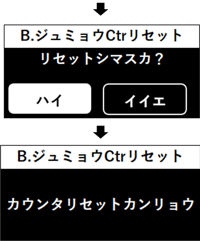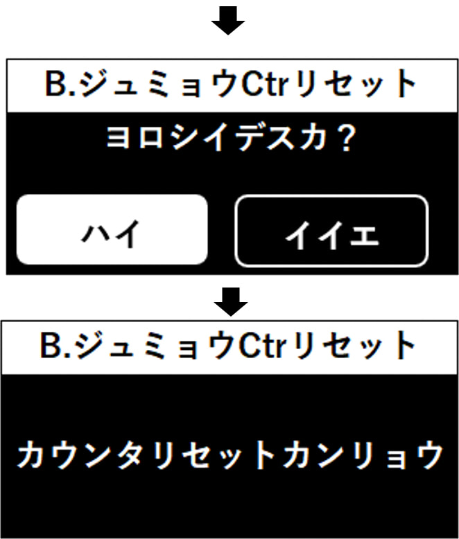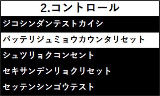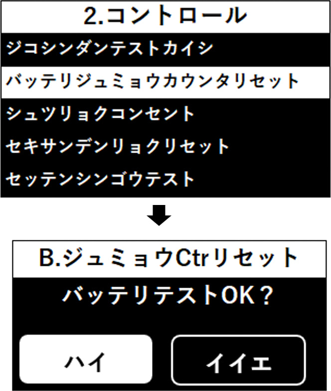 | 操作方法 | バッテリ交換時に実施するバッテリ寿命カウンタリセットの操作手順を変更します。バッテリ交換せずにリセットしてしまう誤操作防止対策として、バッテリ交換後の自己診断テストの合格をリセットの条件に追加し、LCDでの操作にその確認操作を追加します。 | |