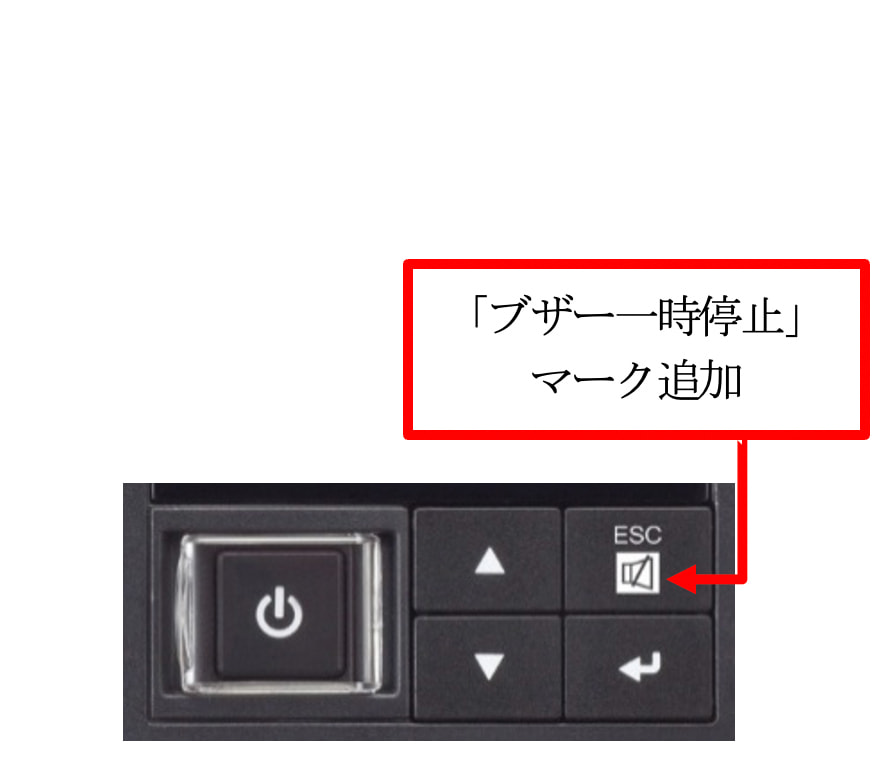 操作性向上のため、ブザー一時停止時に使用する操作部のESCスイッチに、ブザー一時停止マークを追加します。機能上の変更はありません。 なお、ブザーを一時停止するにはECSスイッチを1秒以上押します。 |